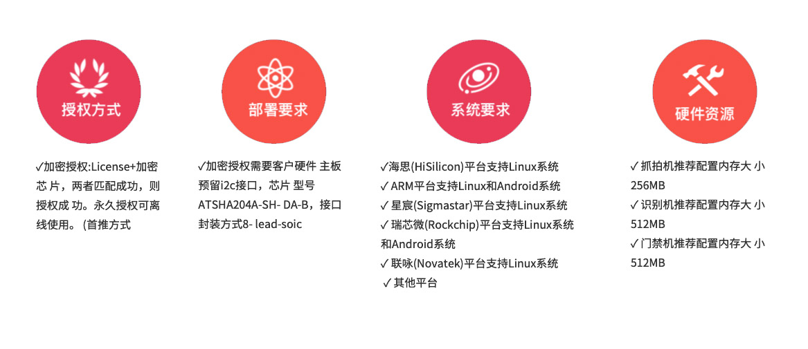 提供人脸、行人、机动⻋、非机动⻋检测跟踪、属性识别、⻋牌识别功能