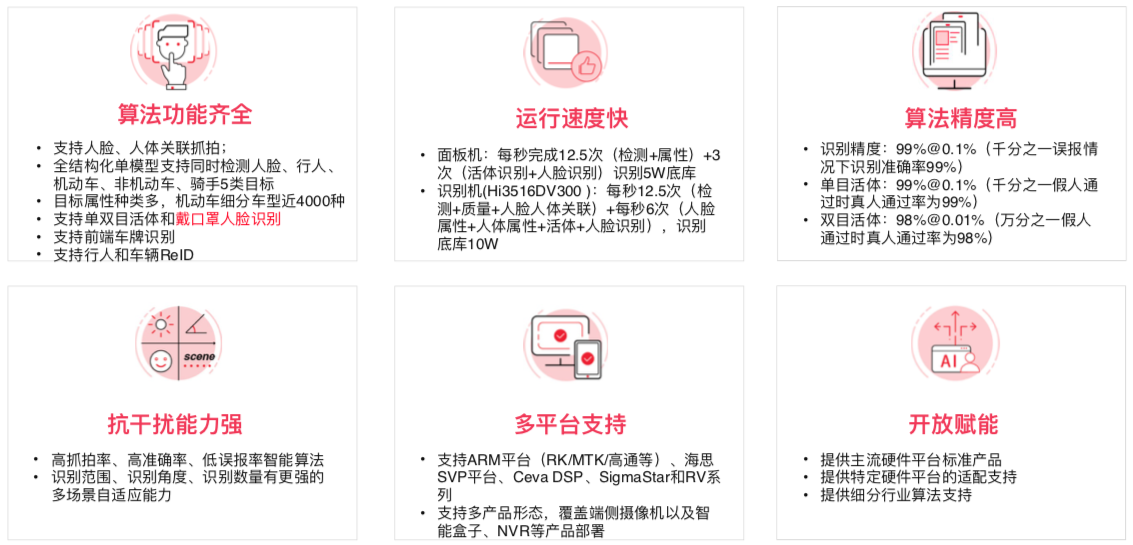 提供人像检测跟踪、属性识别、人脸识别、活体检测功能 - 全结构化算法