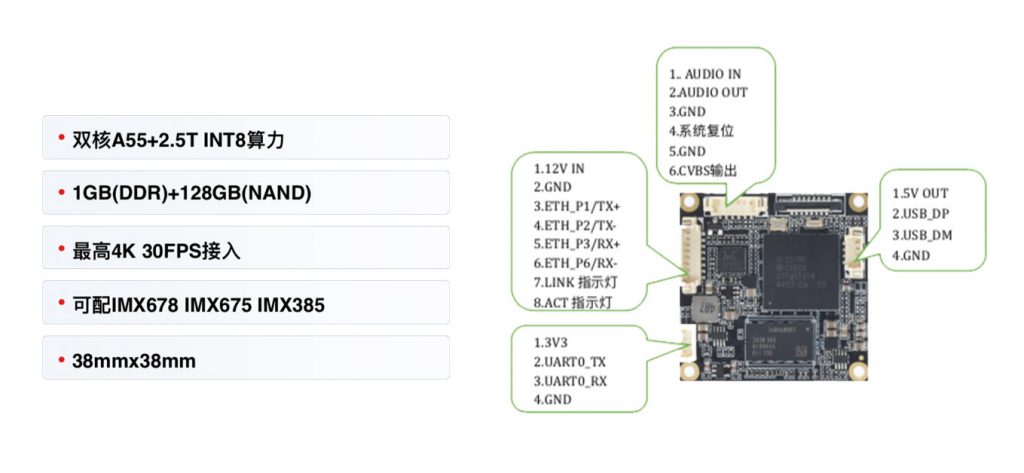 The hardware is based on Hisilicon and Sigmastar AI chips, supporting AISP image enhancement, NN acceleration engine, and WDR capabilities. Combined with Sony IMX675/678 CMOS image sensors, the module products can quickly achieve detection and recognition effects under ultra-low illumination and ultra strong backlighting.
